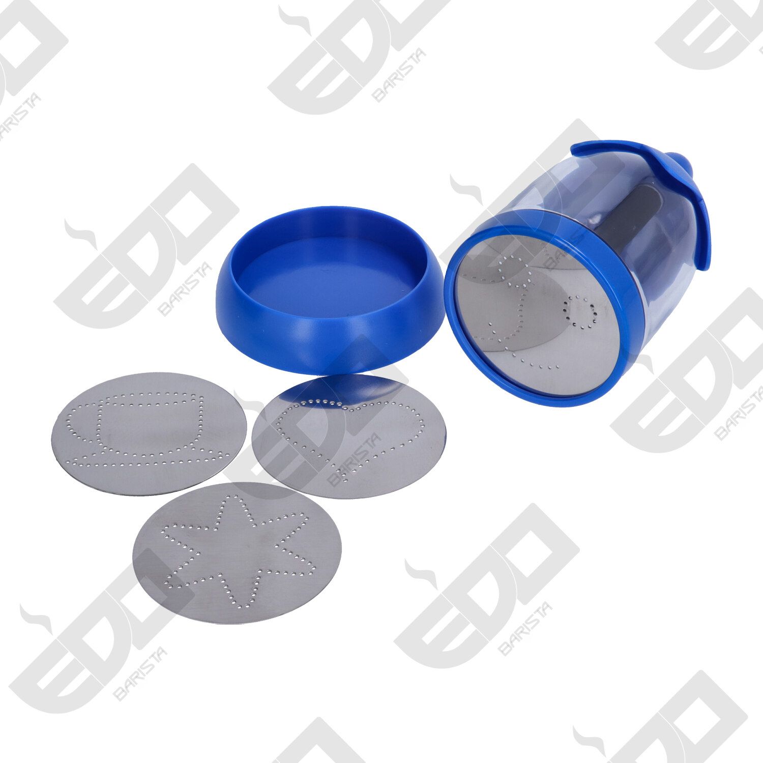 Decoratore cacao con stampini in acciaio inox 18/10 AISI 304. Dimensioni Ø 4.7 cm / H 10.5 cm