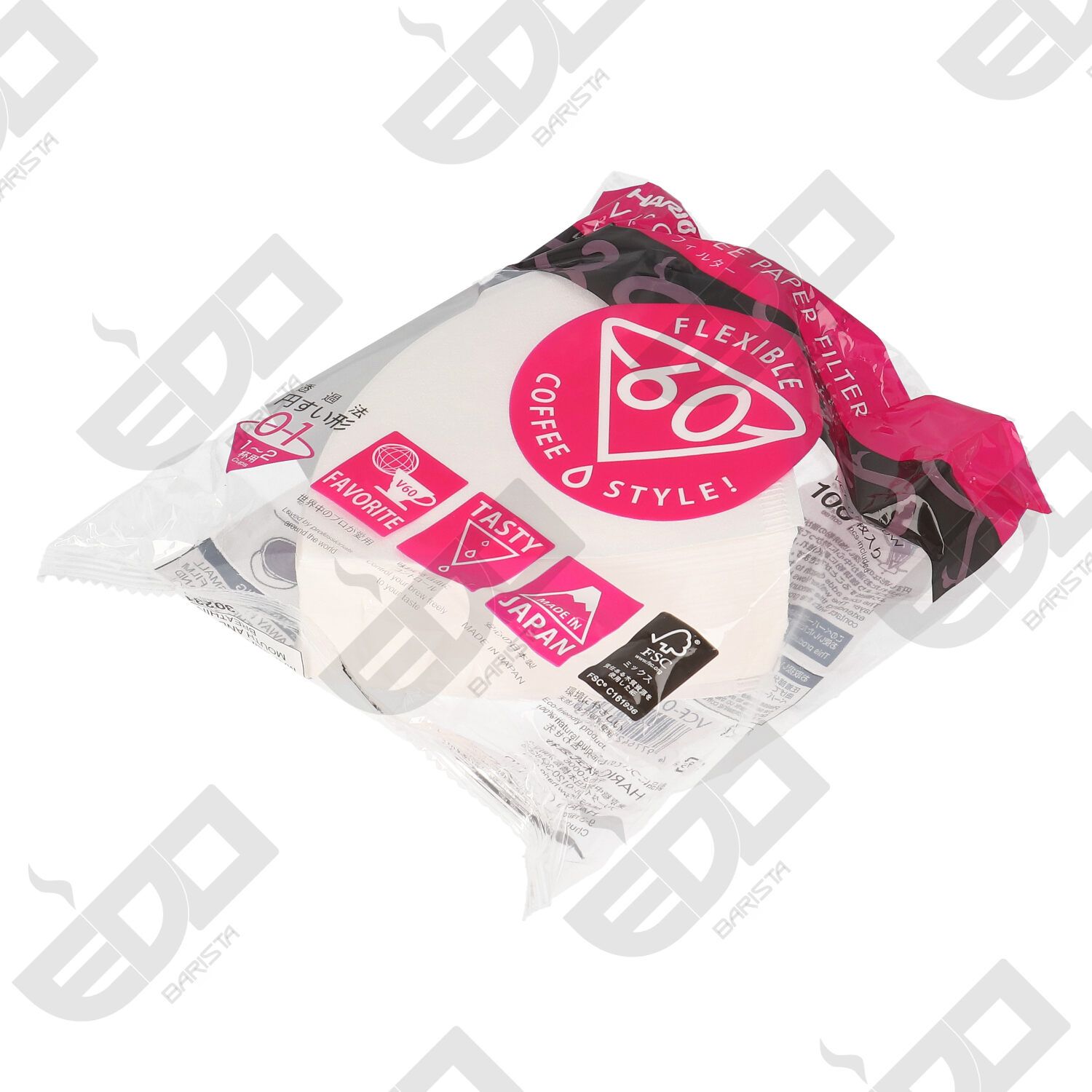Il filtro di carta per V60 assiste il processo di filtraggio del drip-style e permette un buon flow-rate. Dato che il V60 ha le pareti interne a creste, durante l'estrazione l'aria può fuoriuscire con un risultato in tazza perfetto.